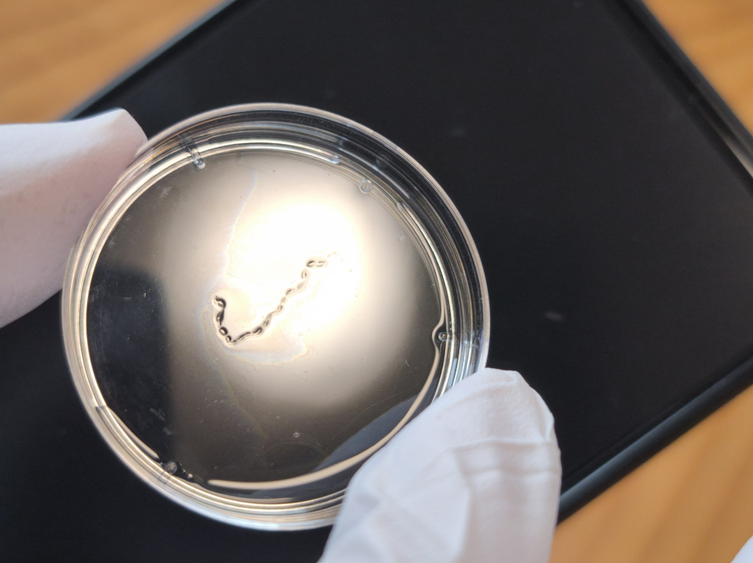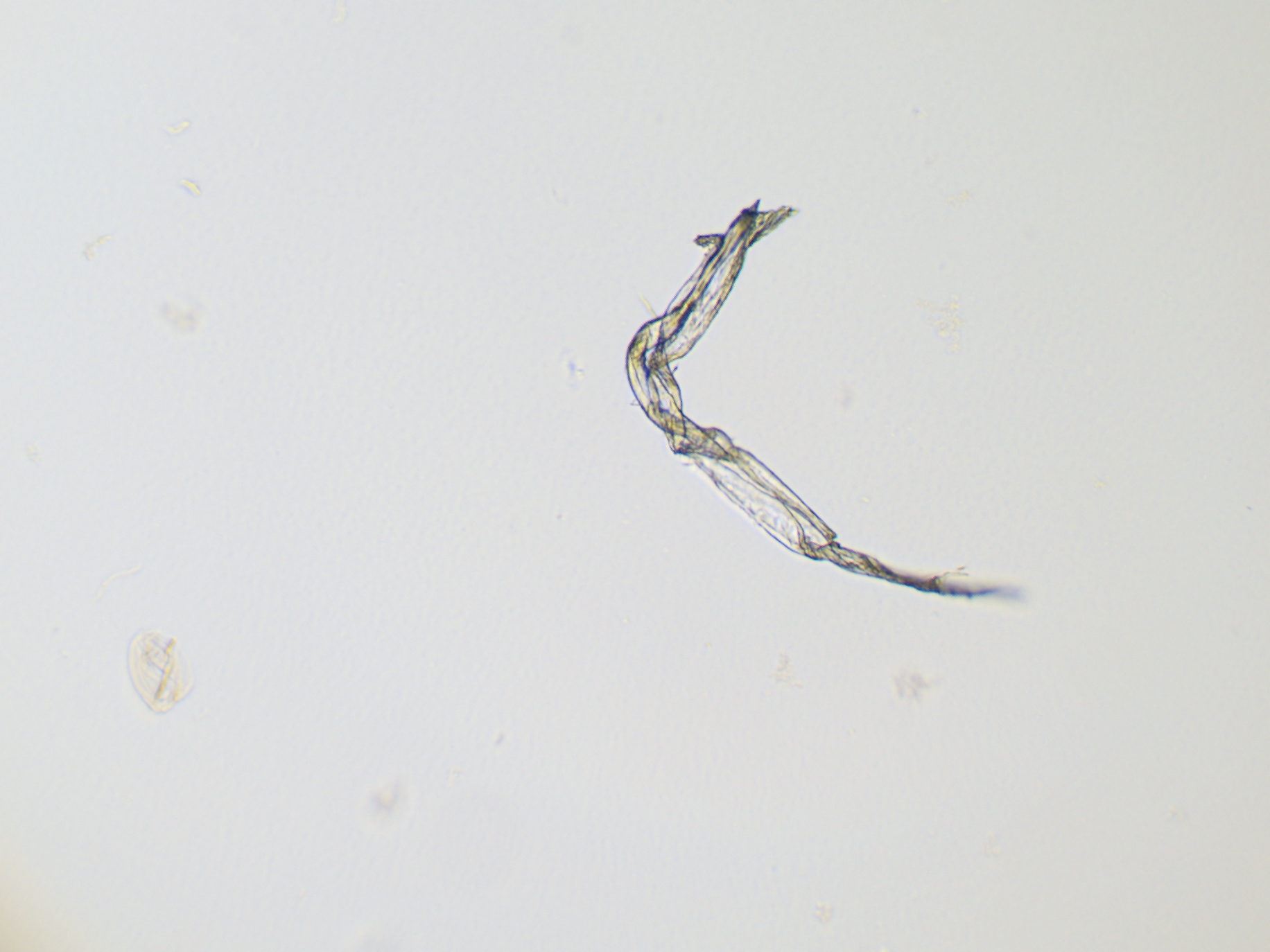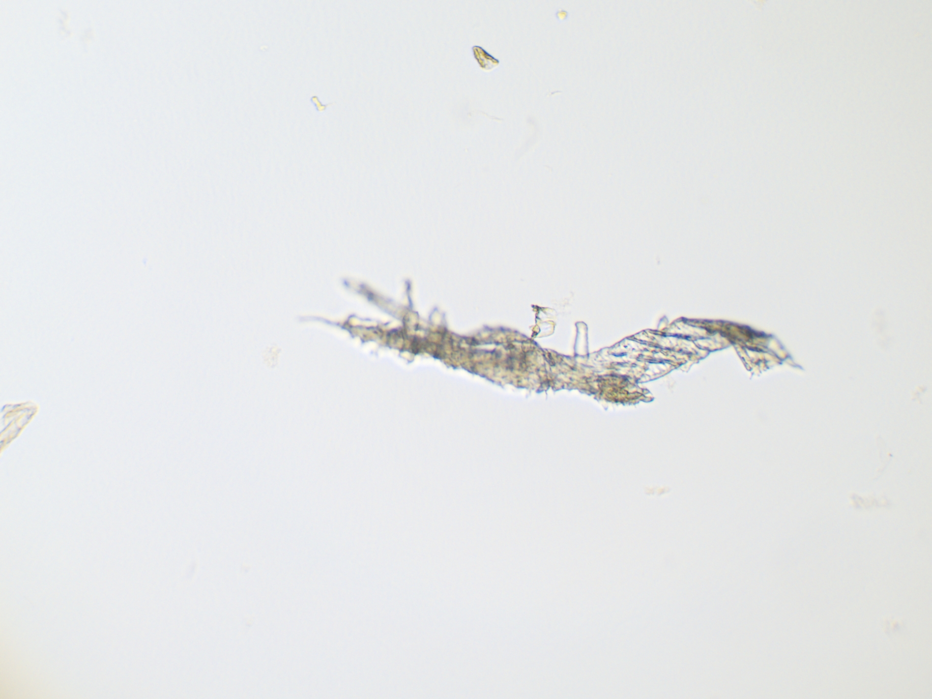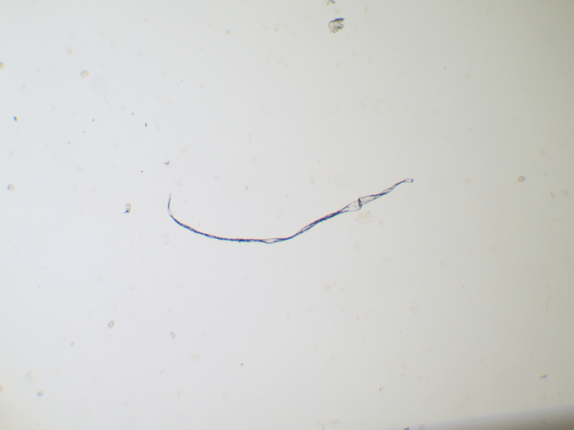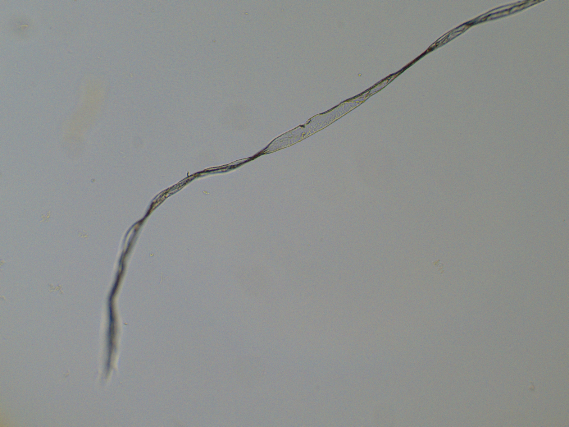 スライドショーのこの非常に長いフィラメントはくねくねした状態で上から下までの幅が約14mm もあり、肉眼でも確認できる。シャーレの直径は35mm。もし、このフィラメントを直線に伸ばしたら、ゆうにシャーレの半径は超えるだろう。ちなみに顕微鏡では40倍で探して100倍で詳細を観察するというのがわたしのパターンだが、対象によっては今回のように肉眼での観察が適切な場合もある。