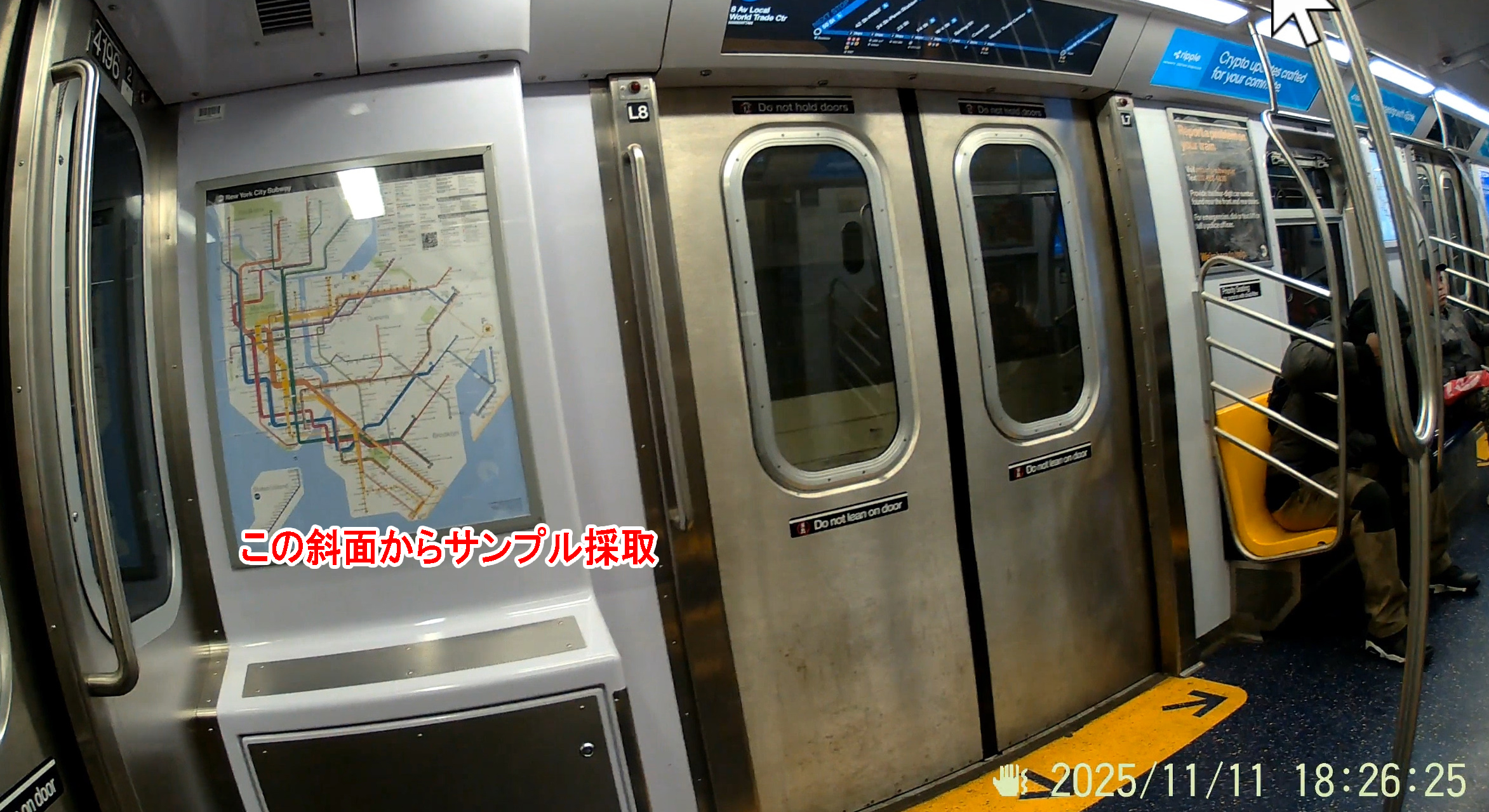ニューヨークでは地下鉄の駅と車内でサンプル採集する予定だった。日本の山手線のカウンターパートとして比較したかったのだ。地下鉄の電車の車内はさほどではないのだが、駅やホームからのサンプルは煤すすけた鉄粉のマイクロダストが予想以上に多かった。ダストロジー海外篇ではいくつか決まった採取ポイントがある。空港内施設、機内、タクシー、ホテル、レストラン、駅(のロッカー等)、電車内である。こうした普通の旅行者が通過するところはどの社会でも多くの人が利用しているわけで、一般的なダストの採取ポイントになるのは自然なことだ。