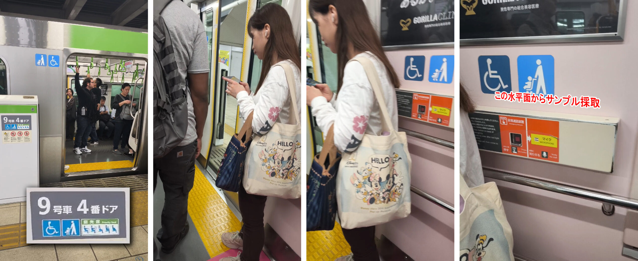 事前に山手線の時刻表と混雑時間帯を調べた。さらに Grok AI で車内清掃のルーティンも調べたところ、ラッシュアワーのあと10:00を過ぎると、なんと山手線の電車は清掃のために専用の車庫に一旦引き上げられてしまうそうだ。日本人はつくづくきれい好き?(笑)清掃が終わってきれいになって出てきた車両で採取したのでは意味がない?そのため、ラッシュアワーを過ぎて間もない 9:30~10:00 の時間帯でのサンプル採取がよいと判断した。