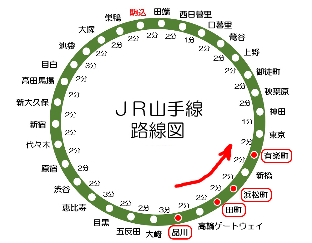6)5)を4回繰り返した(品川、田町、浜松町、有楽町の各駅でそれぞれ9号車4番ドアから乗車)。
