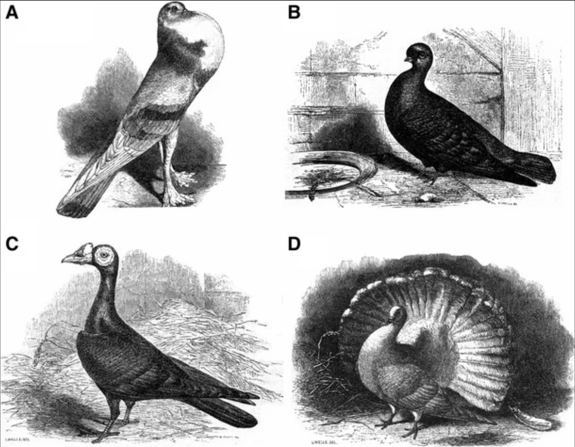 ダーウィン自身もこのブームにはまっていた。1855年(『種の起源』出版の4年前)から自宅で本格的にハトの飼育を開始し、ロンドンのピジョンクラブに加入した。