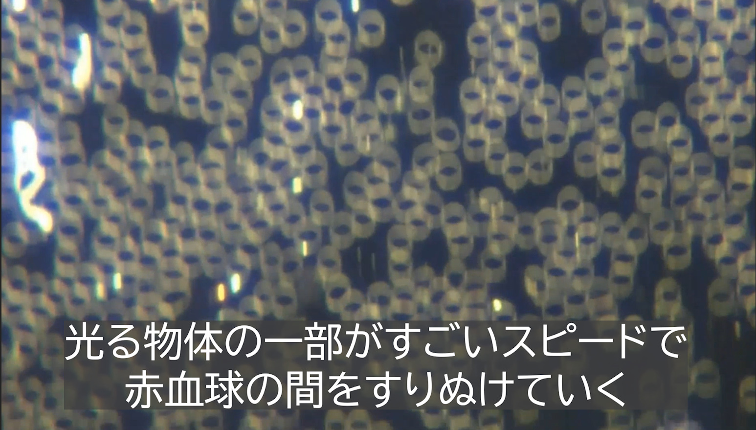 この動画では赤血球よりもはるかに小さい物体が赤血球よりもたくさんうごめいている。AI はこれを説明できないので、強引に「血小板だ」と決めつける。(笑)もっと大きい発光するマイクロロボットは「白血球」だと決めつける始末。(笑)