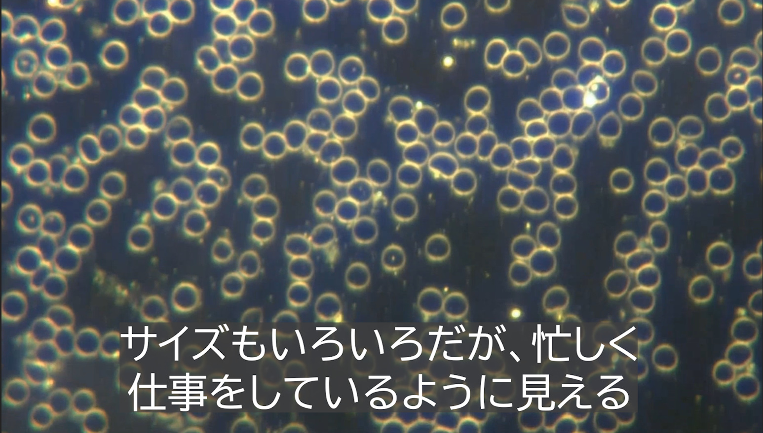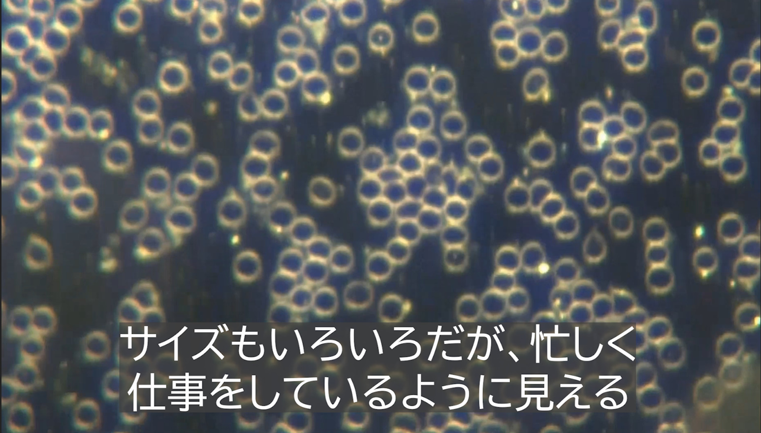 この動画では赤血球よりもはるかに小さい物体が赤血球よりもたくさんうごめいている。AI はこれを説明できないので、強引に「血小板だ」と決めつける。(笑)もっと大きい発光するマイクロロボットは「白血球」だと決めつける始末。(笑)